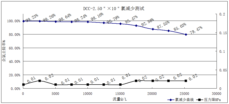 標準10英寸濾芯氯減少及壓力降測試數(shù)據(jù)