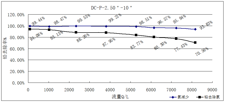 標(biāo)準(zhǔn)10英寸濾芯氯減少及鉛去除降測試數(shù)據(jù)